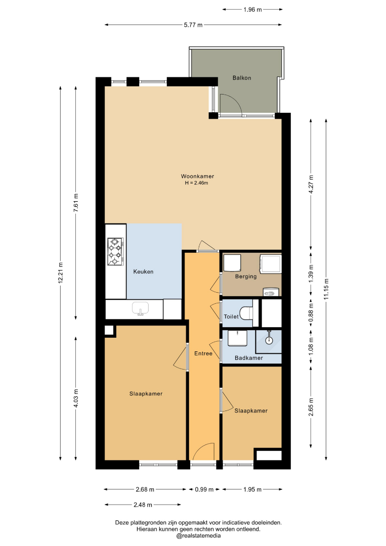 - Praktische berging (ca. 3 m2) met o.a. de witgoedaansluitingen; ideaal als provisie- en opslagruimte.