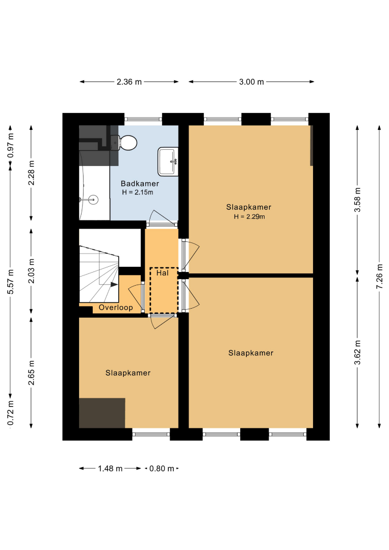 De tweede badkamer (ca. 5m2) werd in 2022–2023 volledig opgeknapt en straalt landelijke luxe uit. De combinatie van een douche-/ligbad met extra lage instap maakt deze ruimte geschikt voor elke levensfase. Daarnaast vind je hier een toilet en een stijlvolle wastafel. DE gehele verdieping is voorzien van rolluiken en jaloezieën.