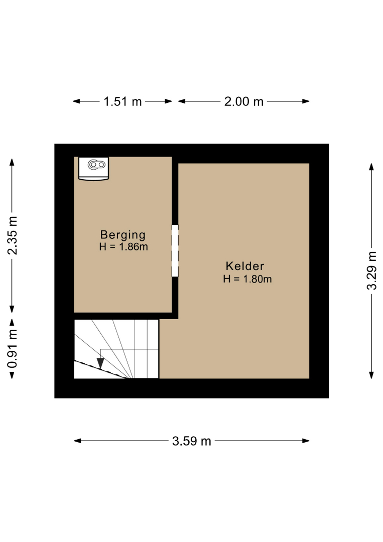 De woning beschikt over een praktische, droge kelder (ca. 12m2) met stahoogte en meterkast.