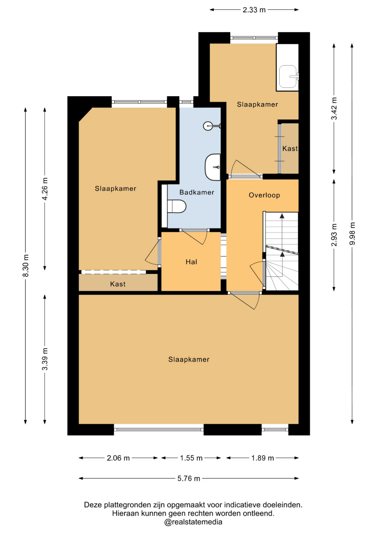 De overloop geeft toegang tot drie slaapkamers en de badkamer. Aan de voorzijde bevindt zich de royale master bedroom (ca. 21 m²) met bijzonder veel lichtinval en een praktisch rolluik. Aan de achterzijde ligt een unieke kamer, ideaal voor jonge gezinnen: deze is voorzien van een vast meubel met wastafel en een ingebouwd babybadje, compleet met warm water en afvoer. Ook de derde slaapkamer is ruim van opzet. Alle kamers beschikken over onderhoudsvriendelijke kunststof kozijnen met dubbele beglazing. De badkamer is volledig betegeld en praktisch ingericht met een douche, wastafel en een tweede (hangend) toilet.