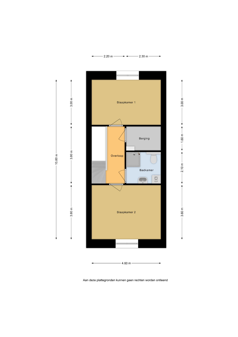 Hier bevindt zich een ruime slaapkamer van circa 17m² en een 2e slaapkamer van circa 14m², geschikt als kin- derslaapkamer, werk- of hobbyruimte. Daarnaast is de badkamer voorzien van een inloopdouche, wastafel en een tweede toilet. De overloop verbindt alle ruimtes en geeft toegang tot een praktische berging.